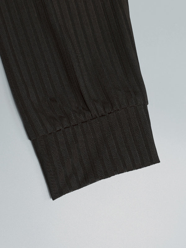 Casual stand-up collar stretch vertical strip long-sleeve V-neck POLO